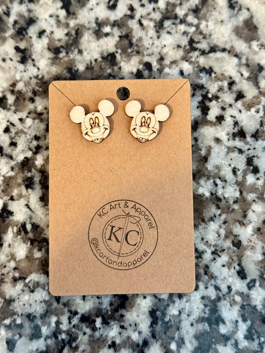 Laser Engraved Mickey Post Earrings