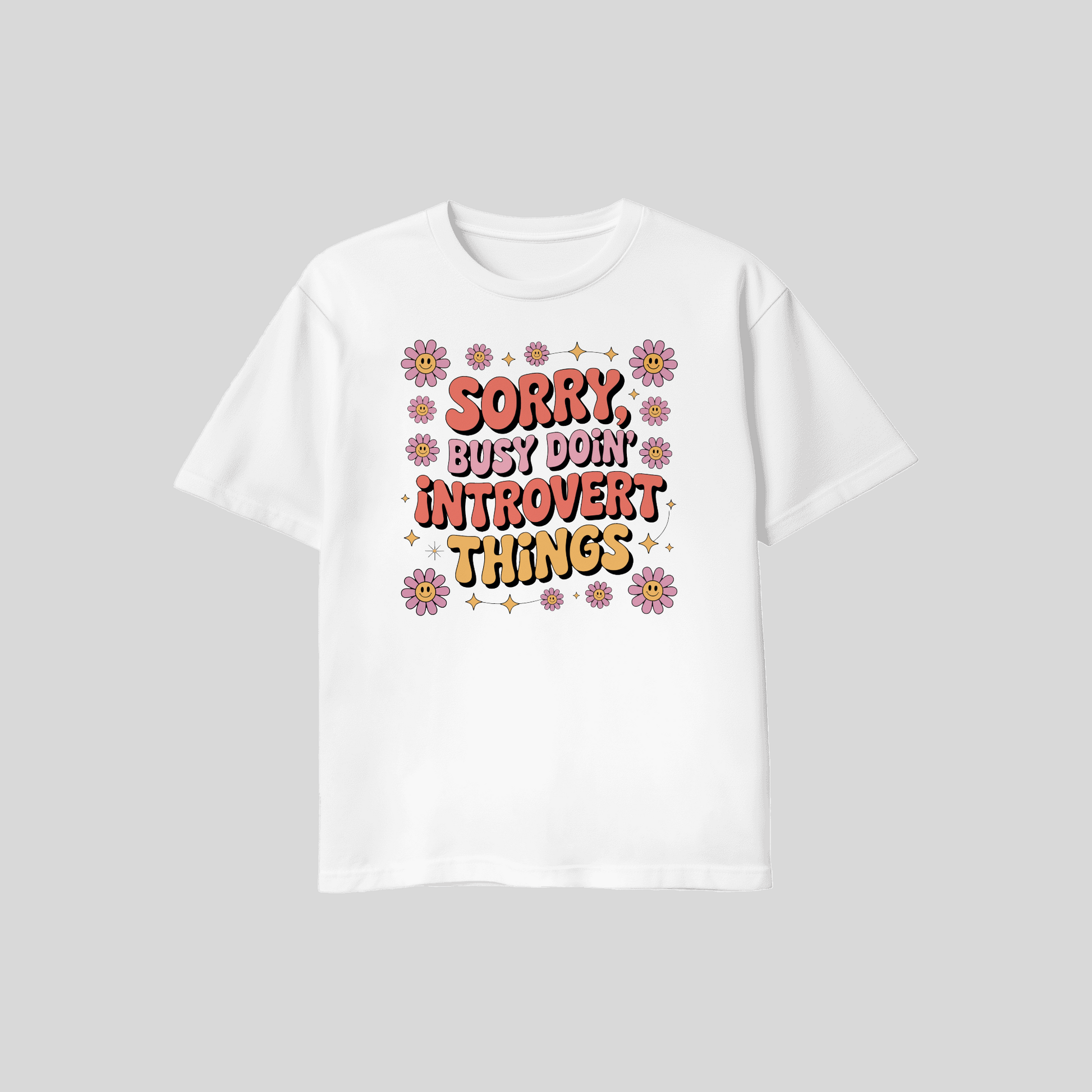 Perfect for introverts who need a humorous way to explain their solo plans, this DTF (Direct-to-Film) transfer features the witty message "Sorry, Busy Doin' Introvert Things." Ideal for customizing t-shirts, hoodies, and other apparel, this design combines relatable humor with quality print-on-demand versatility. Whether you're stocking inventory or creating personalized gifts, this transfer delivers vibrant, long-lasting results that celebrate the introvert lifestyle with a laugh.